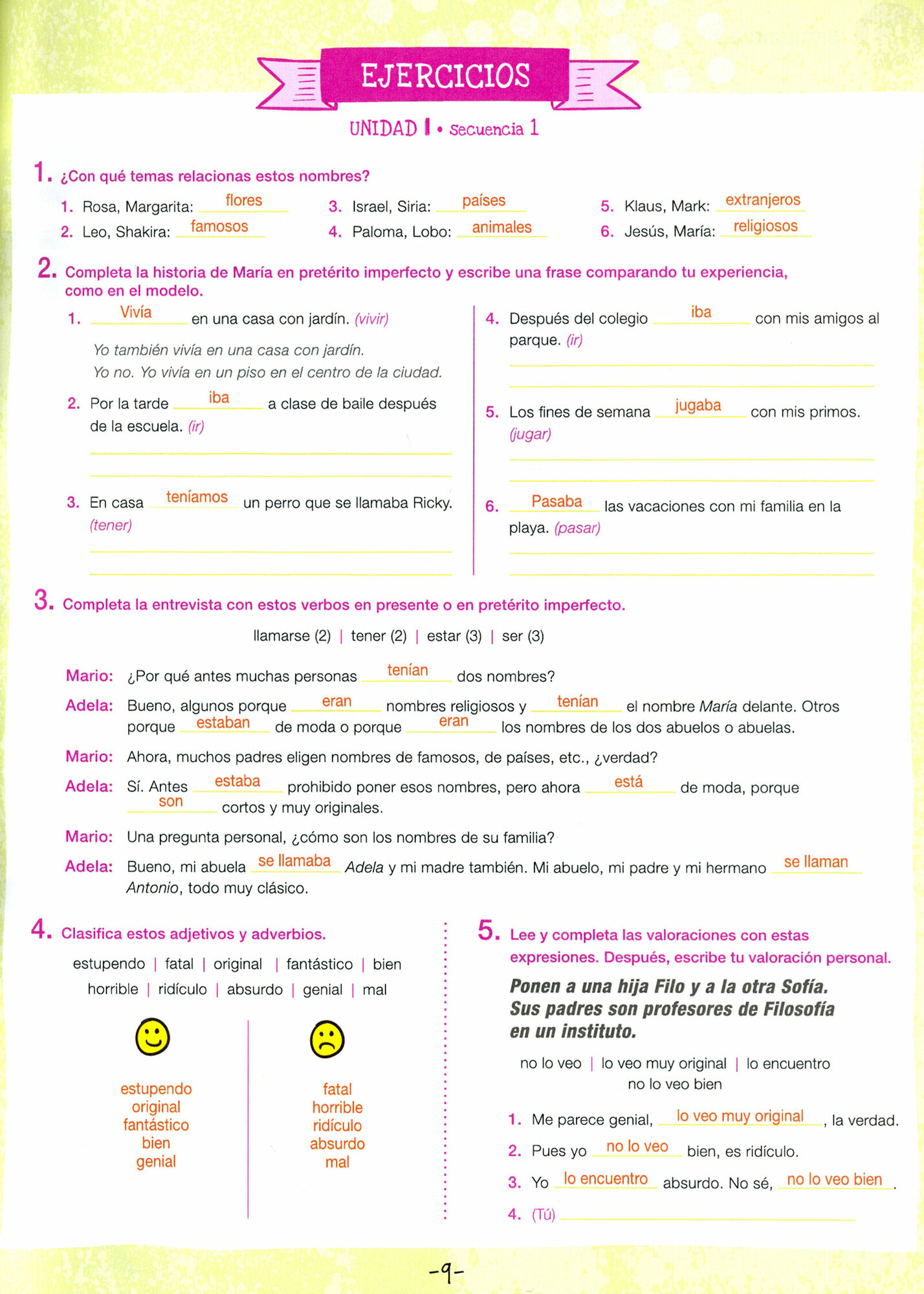 NIVEL A1: Experiencias 1, Experiencias 2, y Experiencias 3