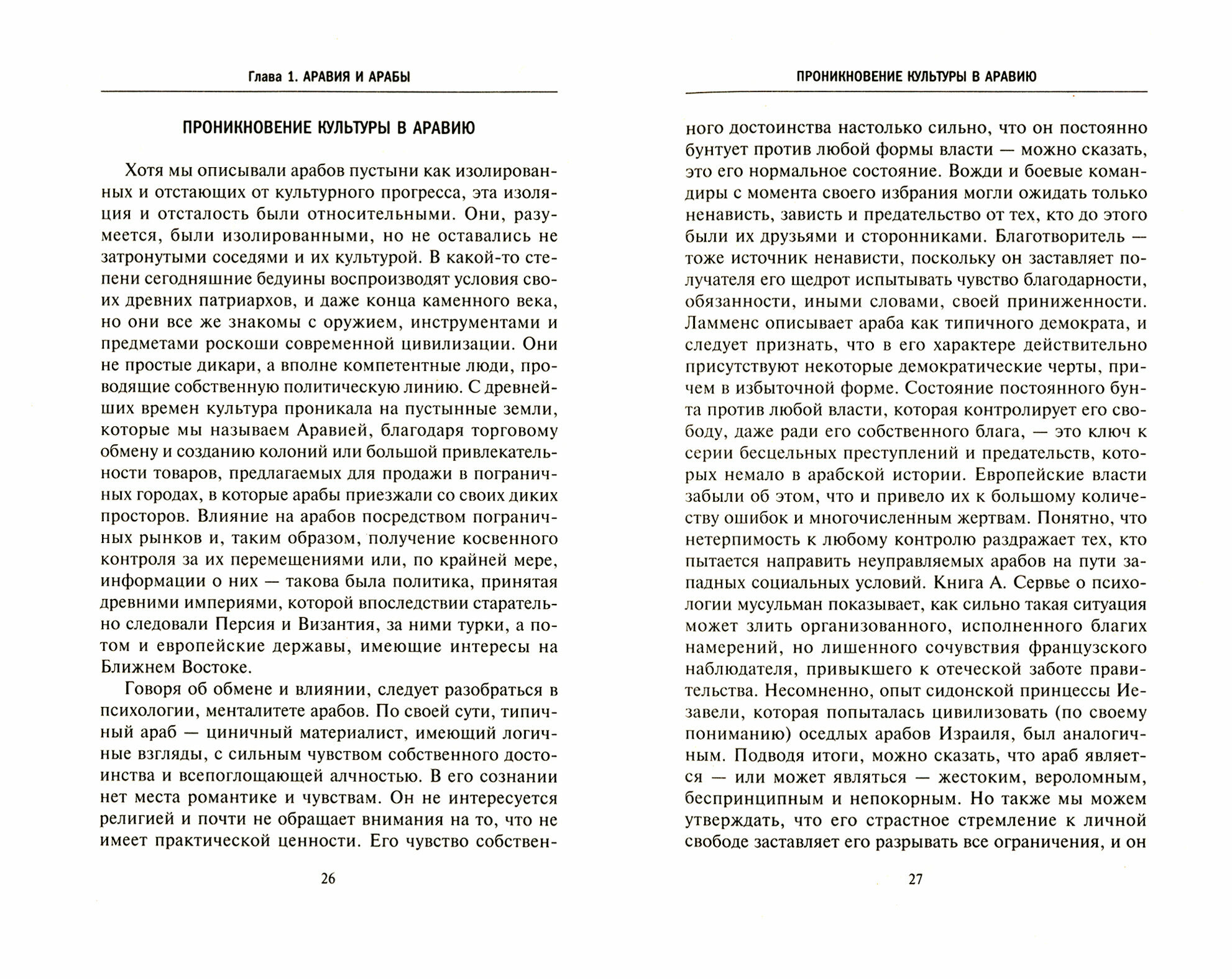Примерно половина книги это история отношений стран между собой ну и плюс упоминания Аравии просто потому что она там была: вначале Рим, Египет, Индия, затем Византия и Персия. Государства эти между собой постоянно взаимодействовали ( торговля, добыча полезных ископаемых или пряностей, вероисповедание и т.д. и т.п.) и вот на этом фоне и появляются арабские бедуины или жители городов на территории Аравии. В общем эта территория была буферной зоной между более сильными соседями и использовали они их в своих интересах постоянно, тем более северные и южные арабы так же между собой постоянно враждовали...
