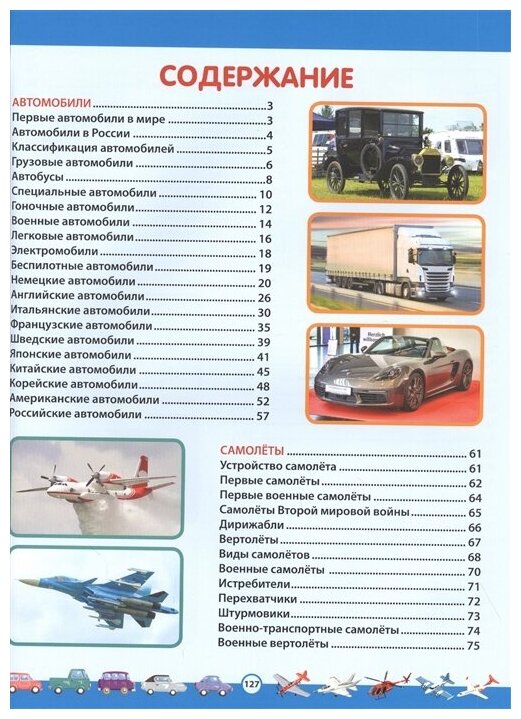 В нашей иллюстрированной энциклопедии ты прочитаешь не только об истории изобретения этих механических творений человека, но и узнаешь о самых последних новинках транспорта и техники, таких как электромобили и беспилотные автомашины, круизные лайнеры и быстроходные яхты, гидросамолёты и дроны.
