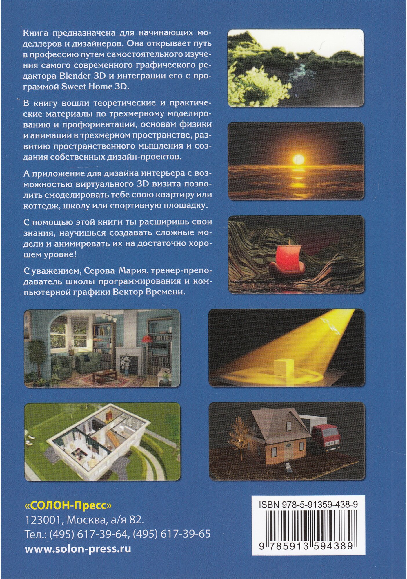 Книга предназначена для начинающих моделлеров и дизайнеров. Она открывает путь в профессию путем самостоятельного изучения самого современного графического редактора Blender 3D и интеграции его с программой Sweet Home 3D.