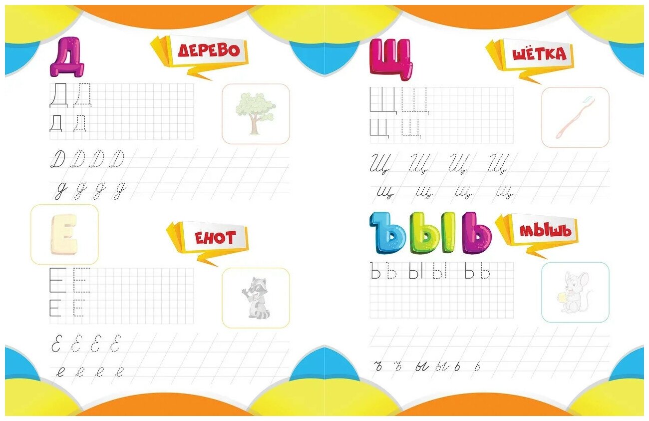 Наша книга поможет малышам легко и весело выучить родной алфавит, а занимательные наклейки и удобные прописи значительно облегчат задачу родителям. У детей появится возможность не только с легкостью запомнить все 33 буквы, но и познакомиться с новыми словами