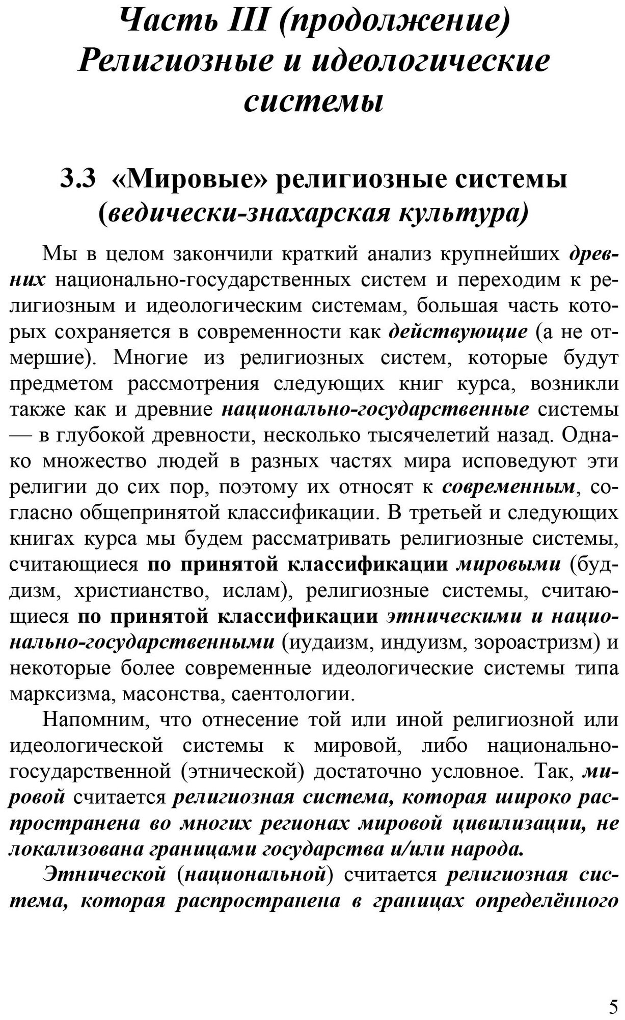 .В третью книгу вошло продолжение части III "Религиозные и идеологические системы", состоящее из разделов 3.3.1 "Религиозная система иудаизма" и 3.3.2 "Религиозная система библейского христианства".