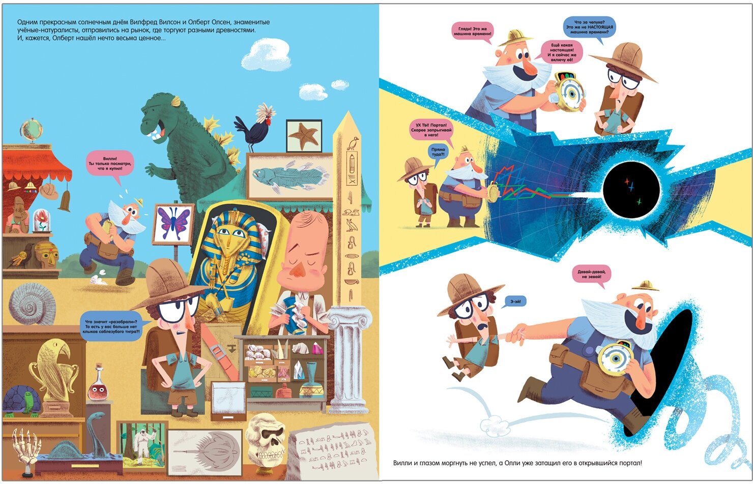 Знакомьтесь: это Вилфред и Олберт, знаменитые ученые-натуралисты. Им выпала уникальная возможность совершить путешествие во времени. Они побывают в далеком прошлом в момент зарождения вселенной, отправятся в эпоху динозавров и мамонтов, застанут время появления первых людей! Но как они вернутся домой? Ответ вы найдете в книге «Сквозь время без тормозов» из серии «Вилли и Олли. Познавательный комикс». Вас ждет завораживающий мир, который создал популярный детский автор и художник Стефан Ломп. Он наполнил этот мир огромным количеством удивительных животных и существ, головоломками и заданиями на логику и внимательность, забавными диалогами главных героев. Благодаря большому формату удобно подолгу рассматривать книгу, находя всё новые и новые подробности и детали на иллюстрациях. Вы готовы отправиться в путешествие сквозь время без тормозов?