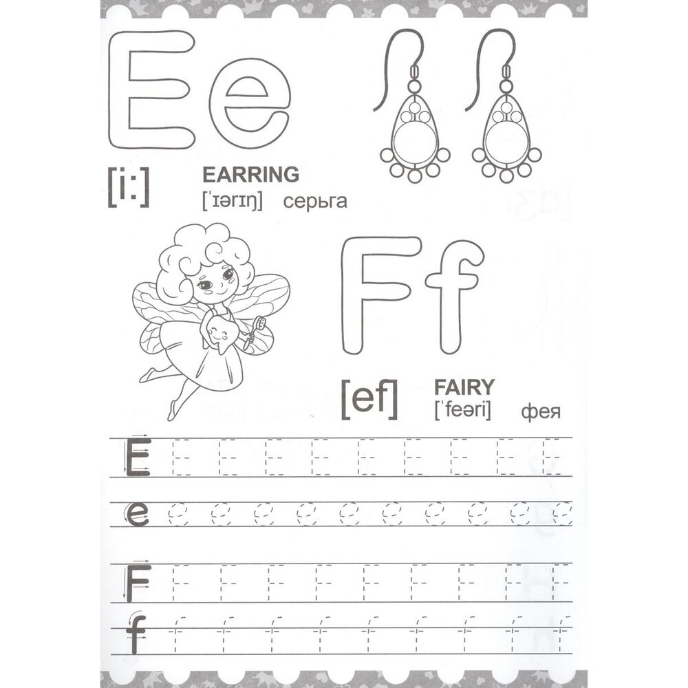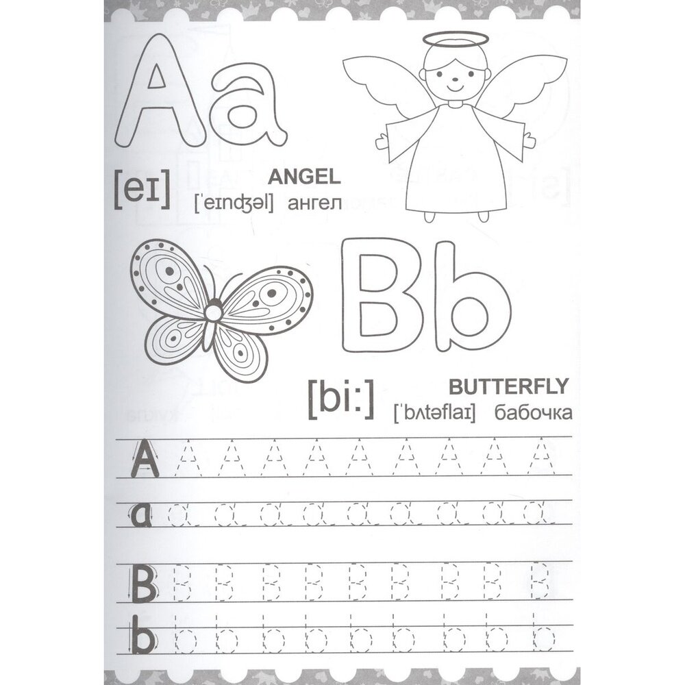 В этом году у моей дочери в саду начинается английский язык. В наших школах и садах не уделяется время на отработку написания букв. Не вводятся прописи, дети их не пишут. Поэтому самостоятельно приходится их вводить и отрабатывать. Пропись хорошая, печатные буквы. Формат большой. К каждой букве подобрано 1 слово с транскрипцией. Ребенок может увеличивать свой словарный запас.