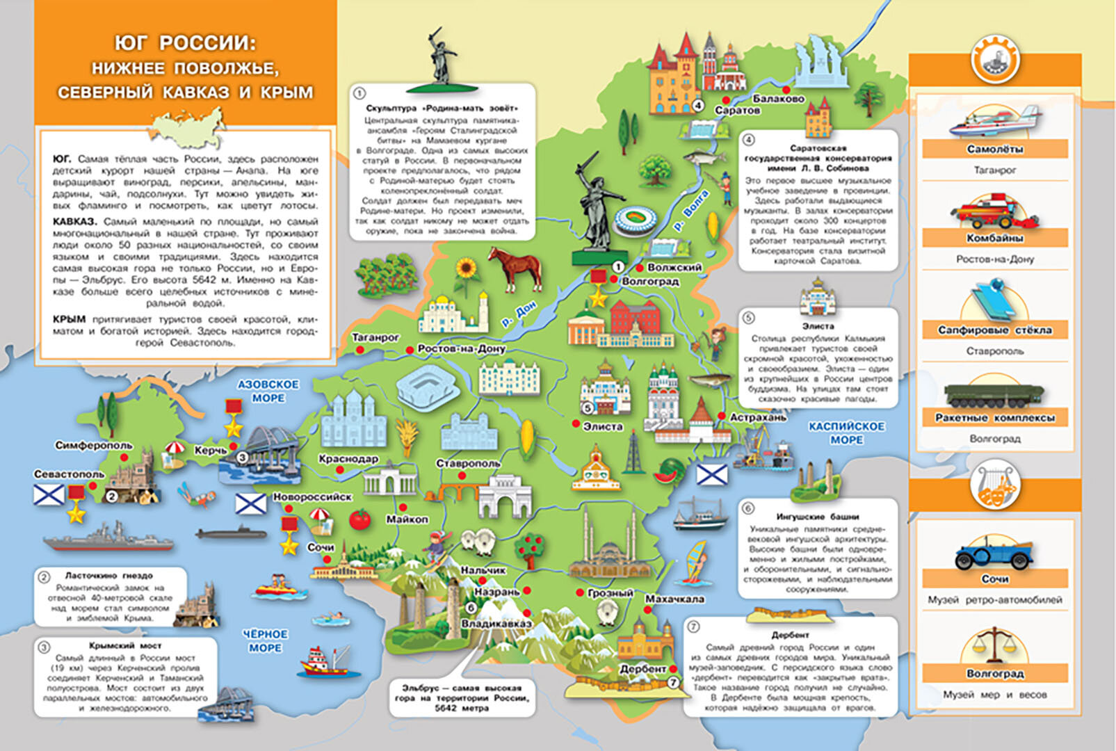 Россия занимает первое место в мире по площади территории. Она такая большая, что когда на западе утро, на востоке уже поздний вечер. Когда на севере ещё лежит снег, на юге уже распускаются весенние цветы. Энциклопедия с наклейками «Россия» расскажет маленьким географам всё самое интересное о нашей огромной стране.