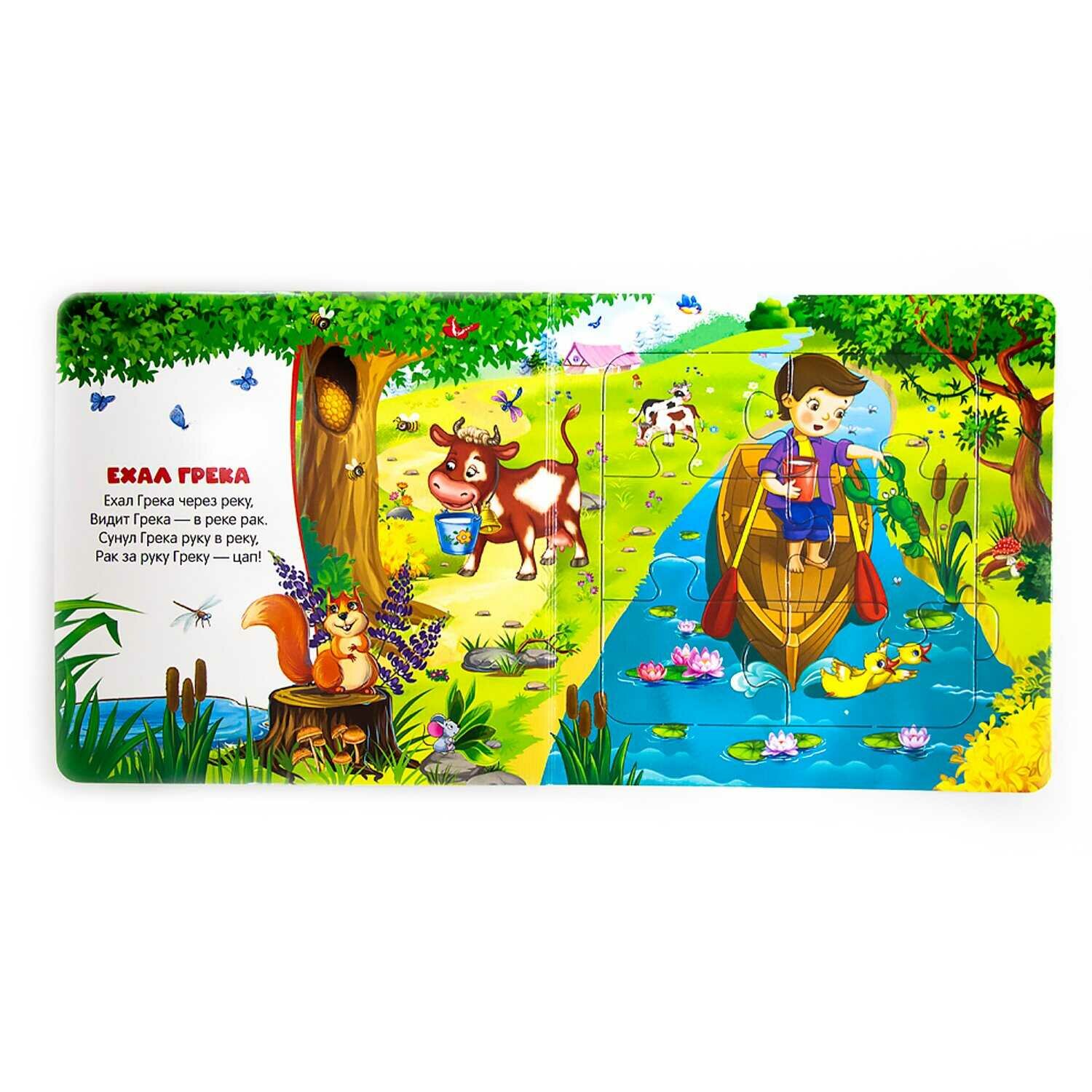 Книжка-пазл "Ехал Грека" - это первое знакомство с русским фольклором. Внутри книжки 5 ярких пазлов из 6 крупных деталей с интересными иллюстрациями. Пазлы помогут вашему ребенку развить фантазию, мелкую моторику рук ребенка, его усидчивость и внимание. Играйте и читайте книгу вместе - проводите время с пользой!