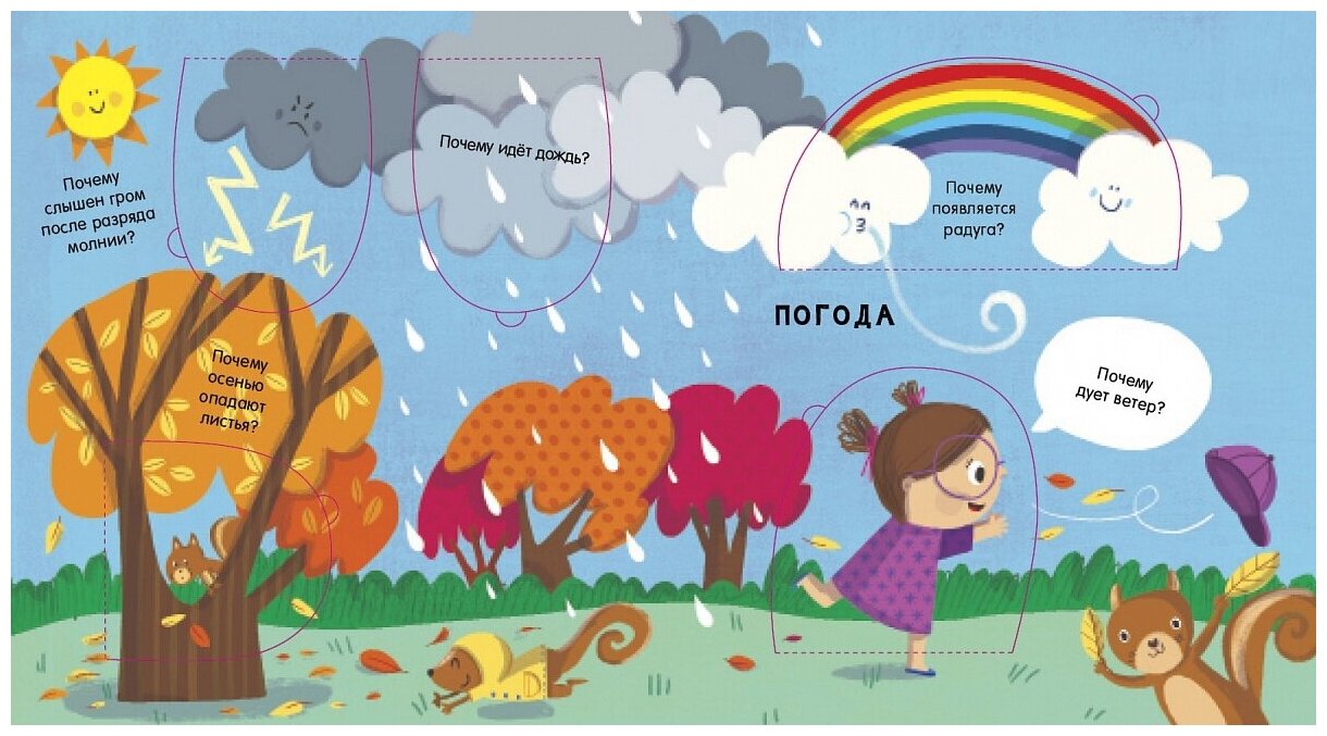 Забавные картинки и простые ответы на вопросы любознательных малышей о природе, окружающем мире, погодных явлениях и многом другом.
