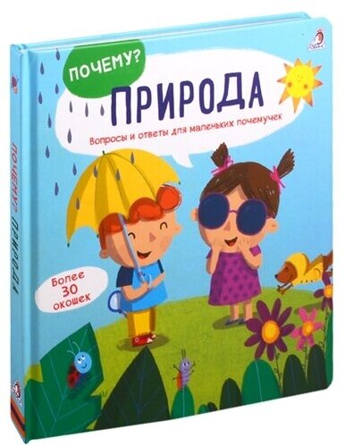 Книга "Природа: Вопросы и ответы для маленьких почемучек" красочная, хорошо иллюстрированная и оформленная, в твердом переплете. Подходит детям 2-3 лет, у них большой интерес вызывает процесс открытия окошек, за которыми скрываются ответы на вопросы о природных явлениях. В книге много интерактивных заданий, которые открывают для малыша окружающий мир. Книга расширяет кругозор малыша и знания об окружающем мире.