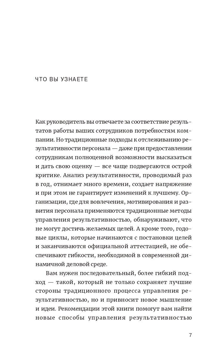 В современных компаниях, где высоко ценится креативность и инновации, оценить работников по старым схемам зачастую просто невозможно. Авторы помогут вам найти новые способы управления результативностью в повседневной работе, позволяющие отслеживать развитие сотрудников, получать обратную связь, находить возможности для роста и при этом обеспечивать достижение общекорпоративных целей.