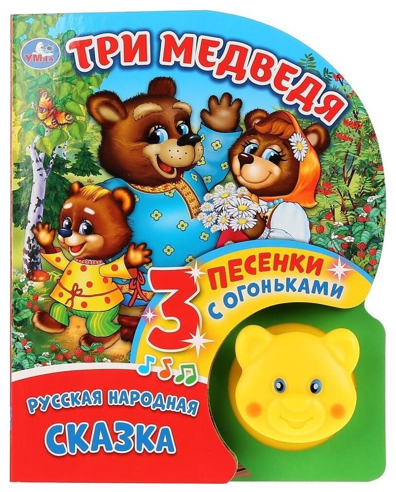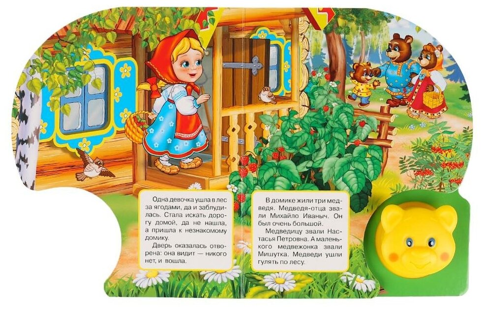 Компактная книга из прочного безопасного картона с кнопкой для прослушивания. Любимые авторы, народные фольклор, истории по мультфильма, и конечно, 3 песенки!