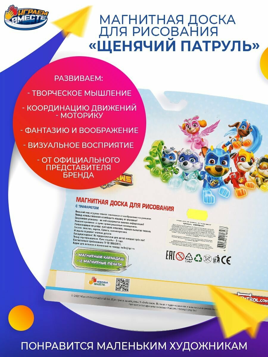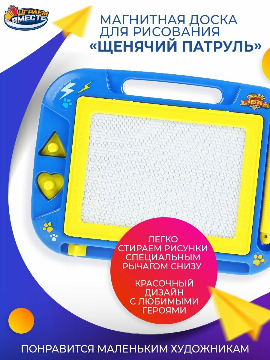 Магнитная доска для рисования Играем Вместе 20 х 15 «Щенячий патруль» с двумя печатями (HS8006KSPP)