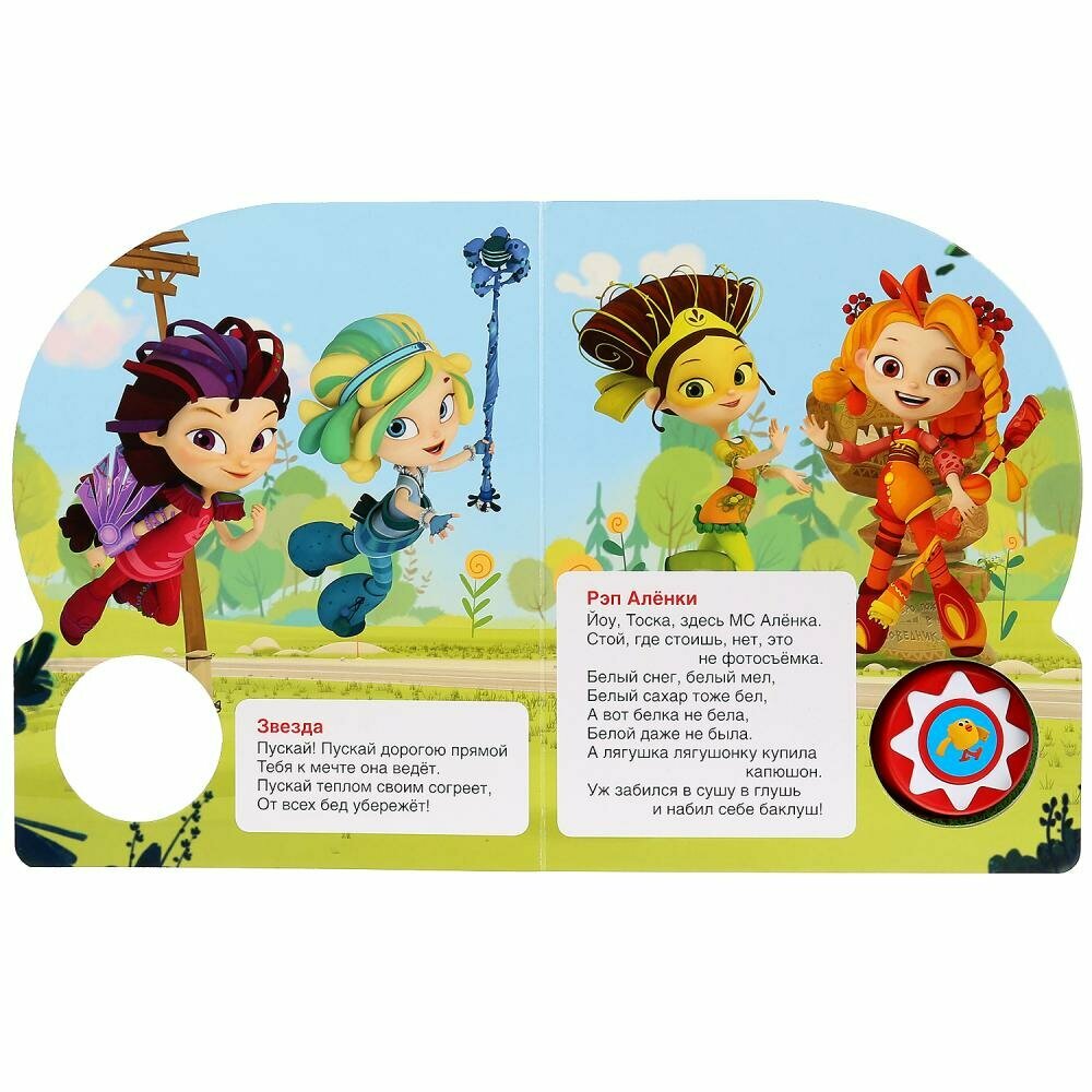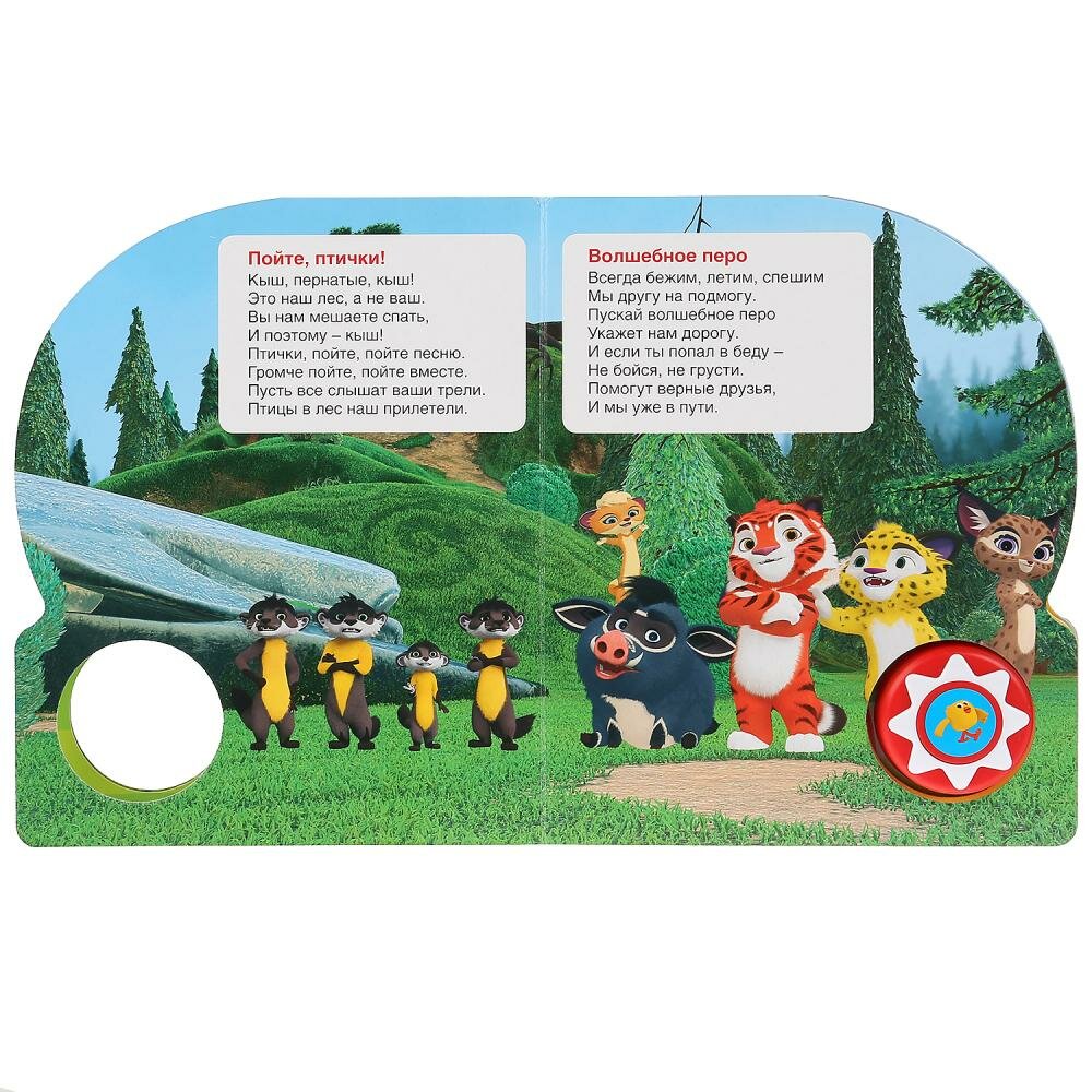 Ребёнок с удовольствием будет листать плотные страницы с яркими картинками, нажимать на кнопку с рисунком и слушать песенки из любимых мультсериалов. Одно нажатие на кнопку – песенка включится, второе нажатие – выключится и т.д. Книжка сделана из плотного картона, поэтому родители могут не опасаться за её сохранность. Благодаря компактному формату книгу удобно брать с собой в дорогу.