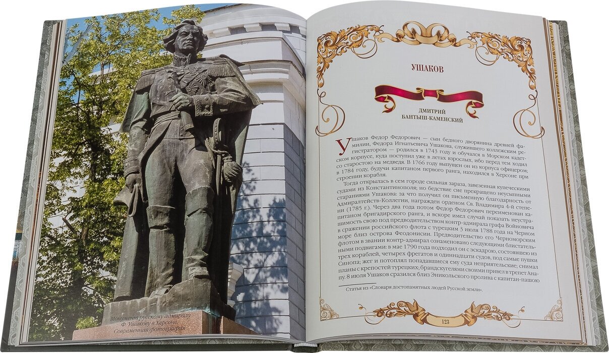 Адмирал Ф.Ф. Ушаков стал первым в истории христианства воином-моряком, причисленным к лику святых Русской Православной Церковью на рубеже III тысячелетия от Рождества Христова. К 275-летию со дня рождения непобедимого адмирала Российского флота приурочен выход данного издания. В книгу вошли «Житие святого праведного воина Феодора Ушакова», составленное монахами Санаксарского монастыря, главы из жизнеописания адмирала, изданного в 1856 году биографом Р.К. Скаловским, исторический очерк исследователя Н.Д. Каллистова, отрывок из повести «Броненосец «Ушаков» писателя-мариниста А.С. Новикова-Прибоя. Внимание читателей, несомненно, привлекут малоизвестные поэтические произведения талантливых авторов XVIII-XIX столетий — В.П. Петрова и И.И. Завалишина, посвященные победам адмирала. В книгу также включены уникальные записки адмирала А.С. Шишкова, участника секретной экспедиции 1776-1779 годов, и воспоминания капитан-лейтенанта Е.П. Метаксы, служившего в 1798—1800 годах под началом Ф.Ф. Ушакова. Завершает издание очерк «Санаксарские чудеса» петербургского писателя и историка Е.В. Лукина.
