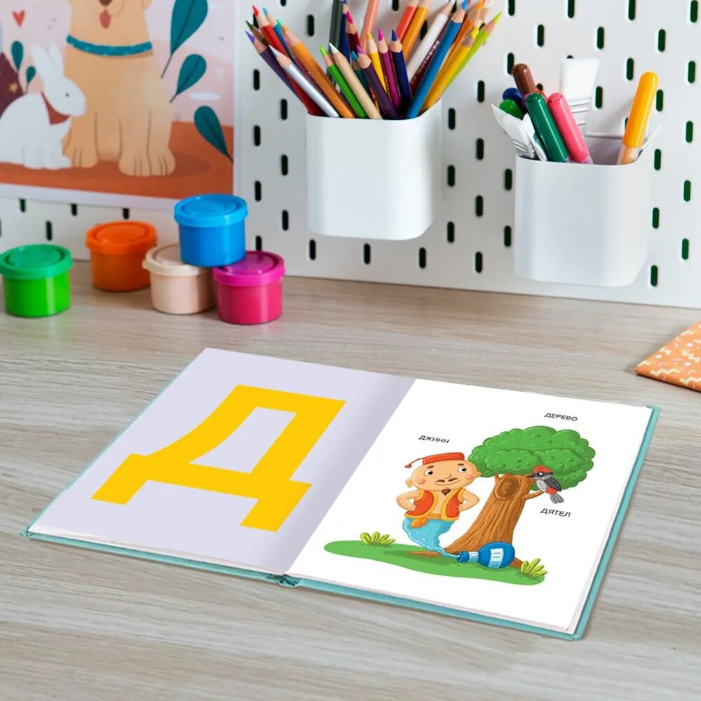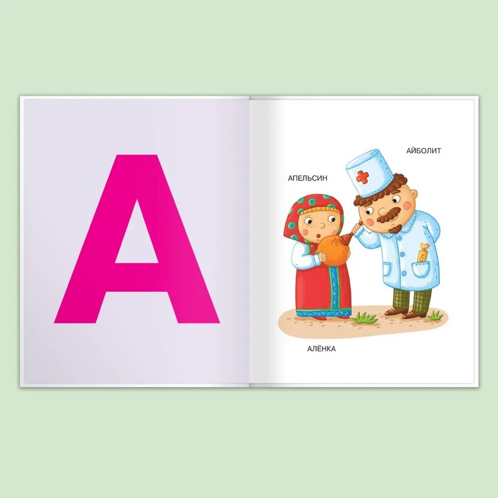 Пришла нам эта книжка. Ребенку пока три месяца, но как мама я могу сказать, что для малышей с полутора лет это самое то, как говорится. Иллюстрации не перегружены деталями, буквы крупные, и все персонажи на картинках– из самых знакомых сказок нашего детства, которые мы можем детям рассказать или, в крайней случае, найти в интернете и прочесть. Русалка, Шехерезада, Джинн, Маша и Медведь... С удовольствием буду учить подросшего малыша по этой азбуке!