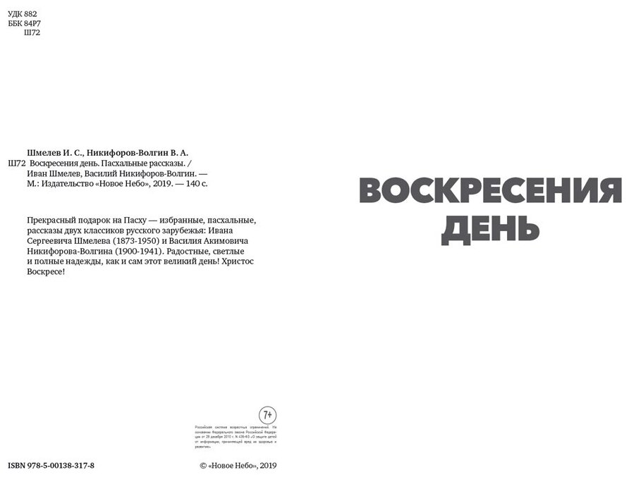 Воскресения день. Пасхальные рассказы (Никифоров-Волгин Василий Акимович; Шмелев Иван Сергеевич); Новое Небо, 2019