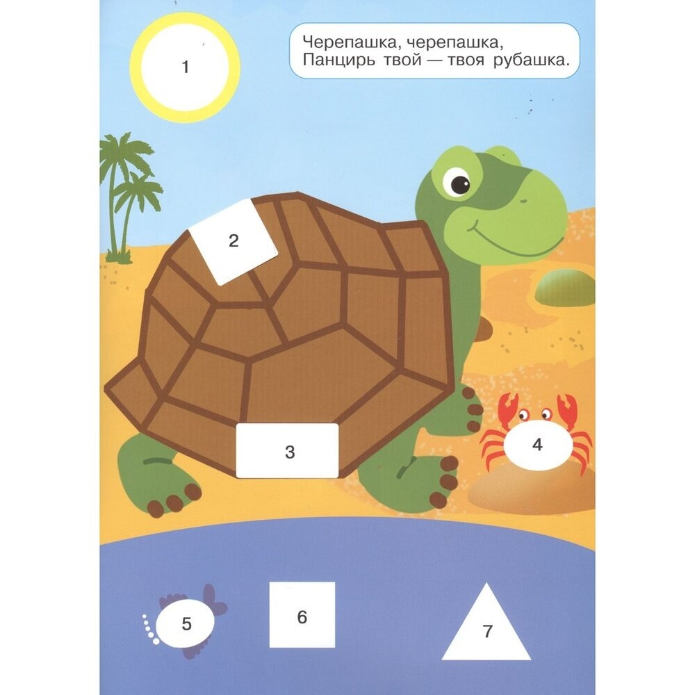 Эта книга аппликаций предназначена специально для малышей - её элементы самоклеящиеся, их не нужно вырезать ножницами и смазывать клеем. Все детали аппликаций пронумерованы в соответствии с картинкой, поэтому легко понять, куда их нужно помещать. Аппликация по номерам не только интересное, но и полезное занятие: развивает мелкую моторику рук, творческие способности, воображение, аккуратность. Наклеивая картинки по номерам, малыш легко запомнит цифры и названия геометрических форм, научится сравнивать предметы по форме и размеру. Вместе с вами он может придумывать истории на основе красочных иллюстраций, играть в игру "Кто быстрее найдёт предмет" и т. п.