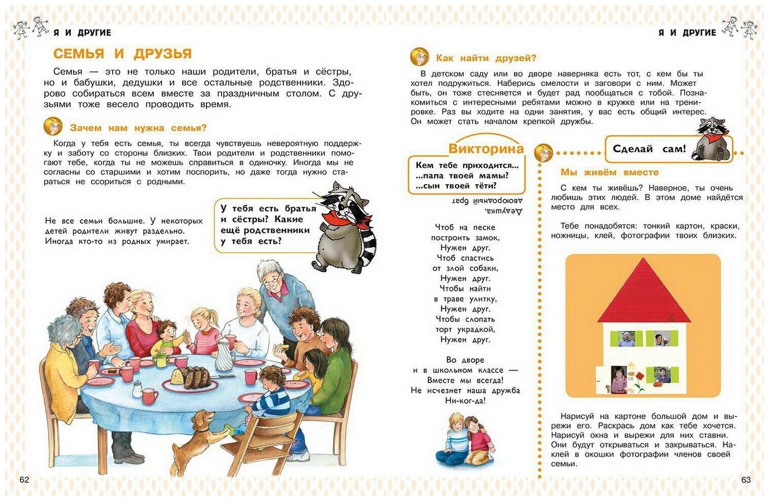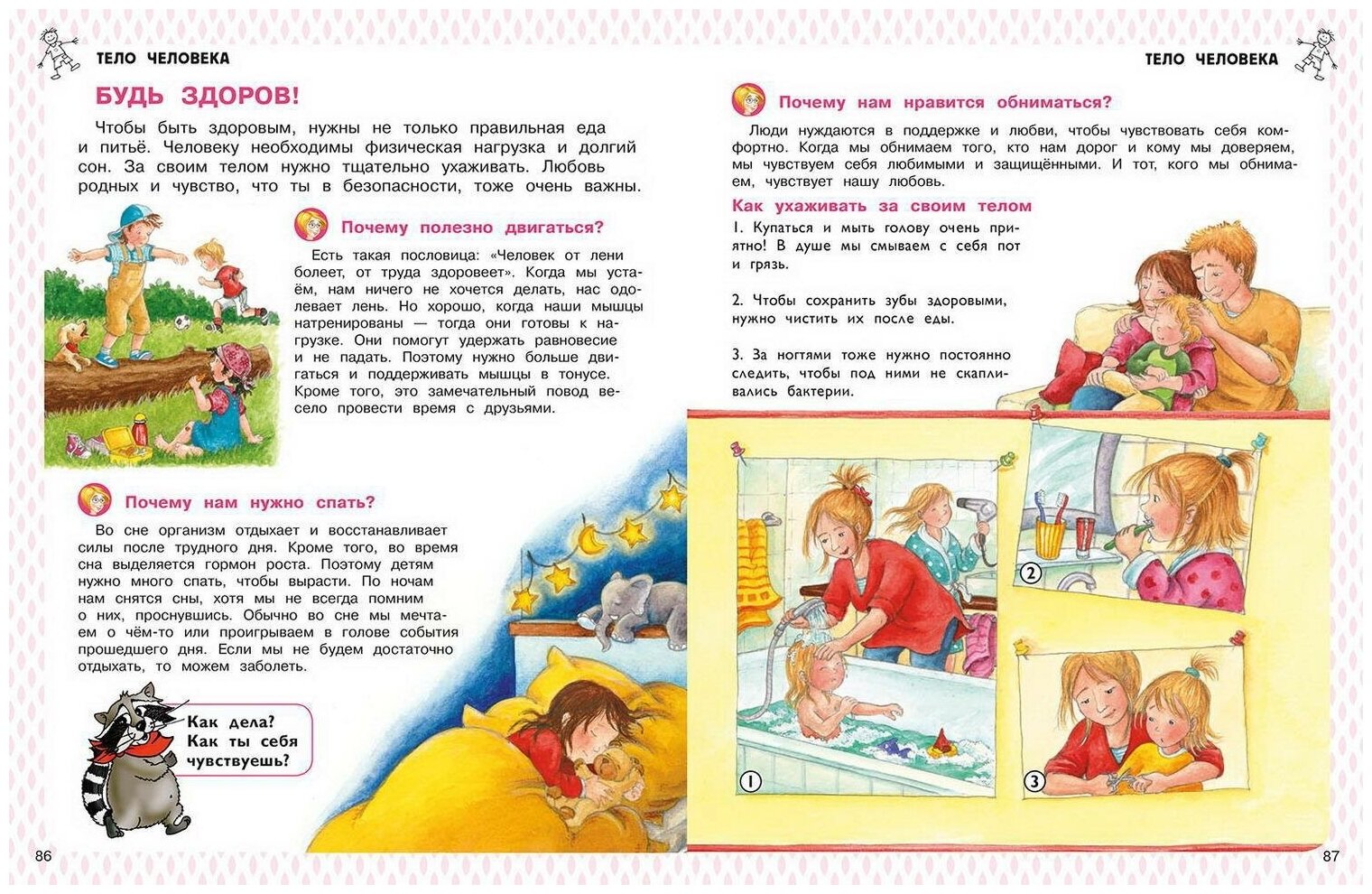 Часть пояснительного текста книги выделена крупным шрифтом, чтобы его смог прочесть сам ребёнок, а весёлый и любопытный енот Вушель, появляющийся на страницах энциклопедии, будет давать небольшие задания, чтобы лучше усвоить изложенный материал.