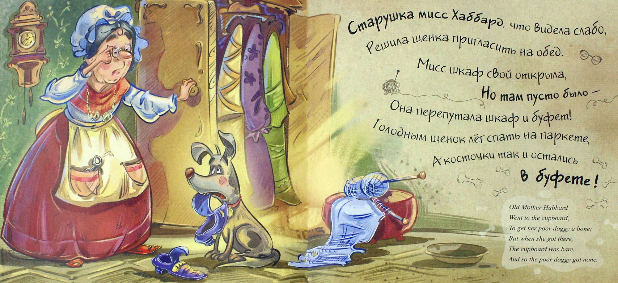 Тонюсенькая книжечка с довольно хорошим переводом и довольно забавными картинками. Главное, в книжечке приводится и оригинальный английский вариант стихотворения - этакая книжечка-билингва. Сейчас родители хотят обучать детей английскому языку с раннего возраста. Эта книжечка идеально подходит для таких вот занятий.