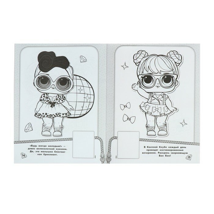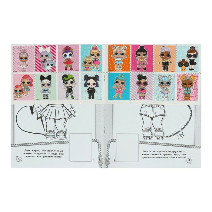Хватай свои самые любимые и яркие карандаши и раскрась куколок L.O.L.! За образец можешь взять наклейки — на каждой странице ты найдёшь место, чтобы приклеить изображения с яркими модницами. Самые великолепные куколки этого сезона ждут тебя!