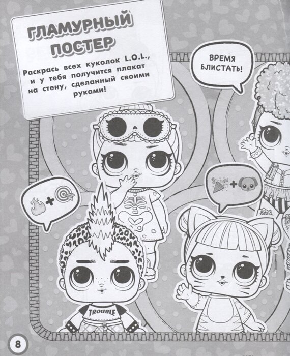 Куколки L.O.L. приглашают стать частью их клуба! Под этой обложкой тебя ждут стильные раскраски, увлекательные задания и куча поводов применить воображение! Наполни цветом мир L.O.L. Surprise!