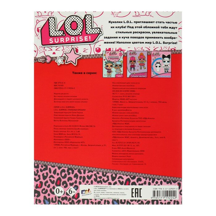 Куколки L.O.L. приглашают стать частью их клуба! Под этой обложкой тебя ждут стильные раскраски, увлекательные задания и куча поводов применить воображение! Наполни цветом мир L.O.L. Surprise!