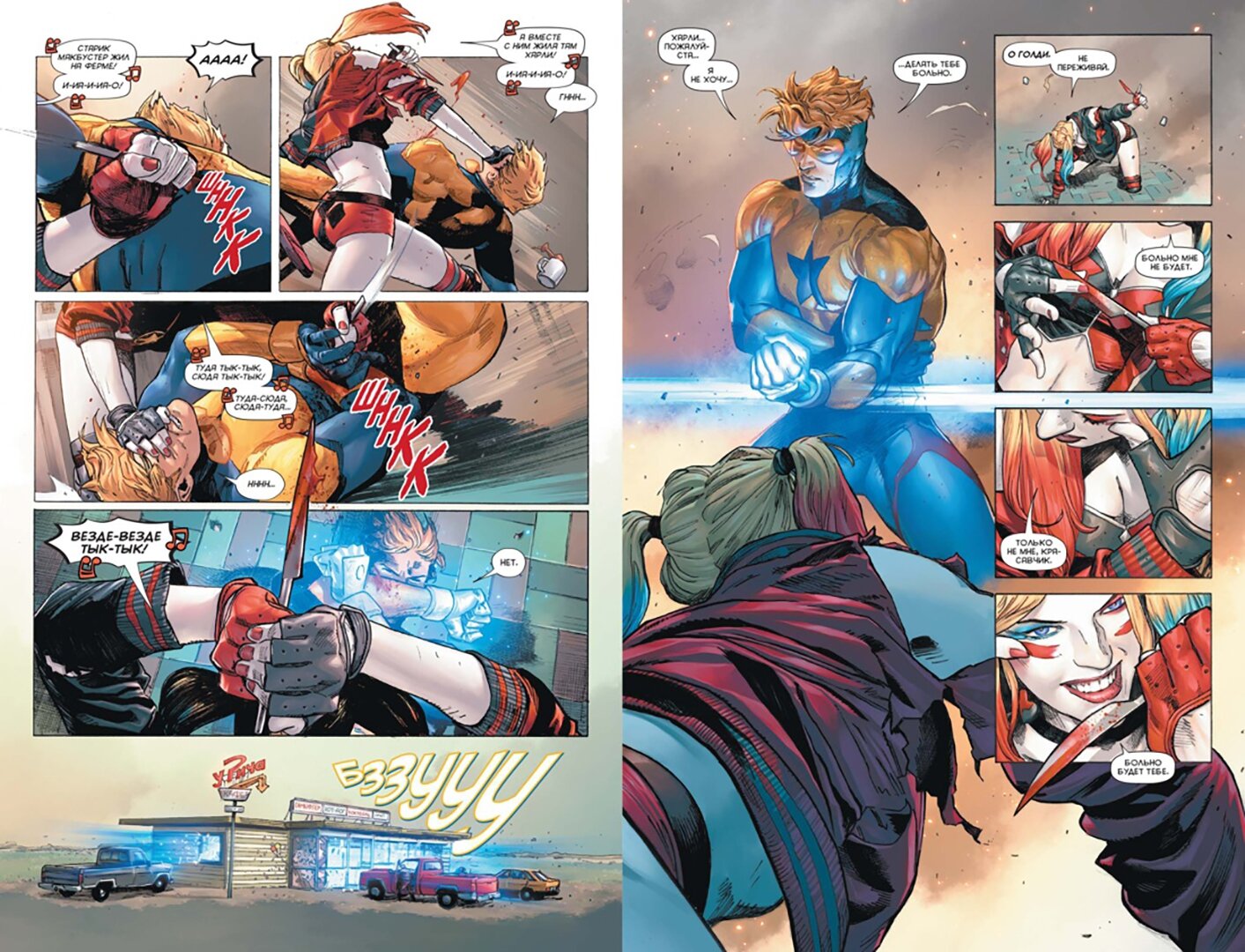 Харли Квинн, Бэтгëрл и Бустер Голд и Флэш - главные герои, и это худшее , что есть в этом комиксе. Они скучные, эгоистичные, их мотивация не ясна. И да, Харли стала сильнее супермена и чудо-женщины. Вместе взятых. Живите с этим.