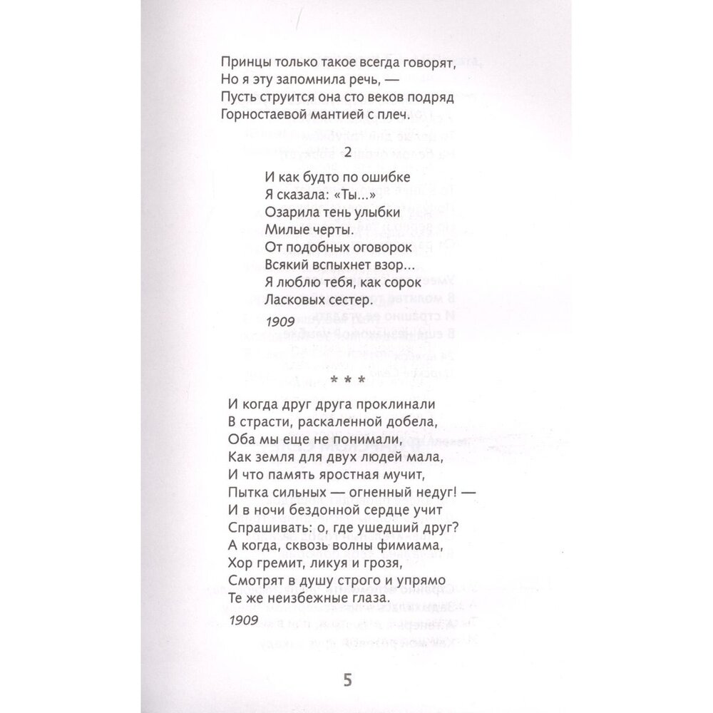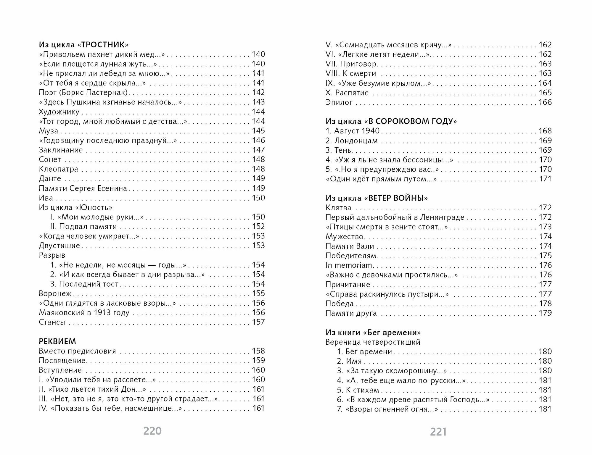 В сборник Анны Ахматовой вошли стихотворения из книг "Вечер", "Четки", "Белая стая" и других, поэма "Реквием", циклы стихов о войне: "В сороковом году", "Ветер войны".