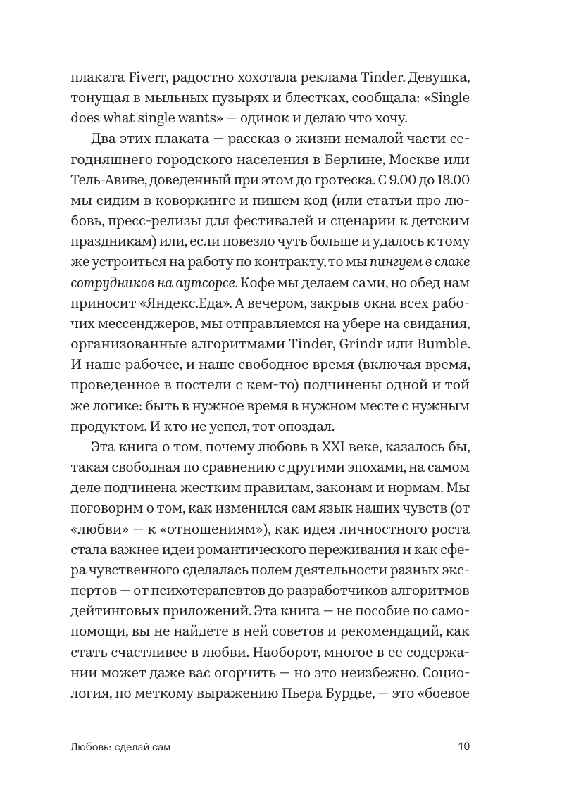 Личные границы, эмоциональный капитализм, любовь к себе и сологамия – это всё мы прекрасно выучили, но знания имеют свойство устаревать, поэтому так важно смотреть на все аспекты нашей жизни с новой стороны. Именно это делает Полина Аронсон в своем культурно-социологическом исследовании – к примеру, она высказывает непопулярные мнения о том, что привычка лепить штамп "созависимые отношения" на всё любовное взаимодействие, в котором ещё осталось место чувствам, вовсе не обязательна!