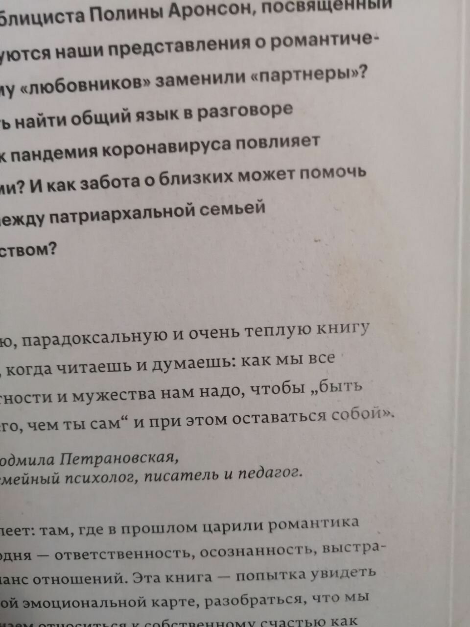 Скажу сразу, книга мало похожа на селф-хелп литературу про то, как нужно правильно жить/любить/делать уборку/питаться (подставьте нужный вариант), и именно этим она мне понравилась. Этот сборник эссе социолога и публициста Полины Аронсон посвящен тому, как в двадцать первом веке конструируются наши представления о романтических чувствах.