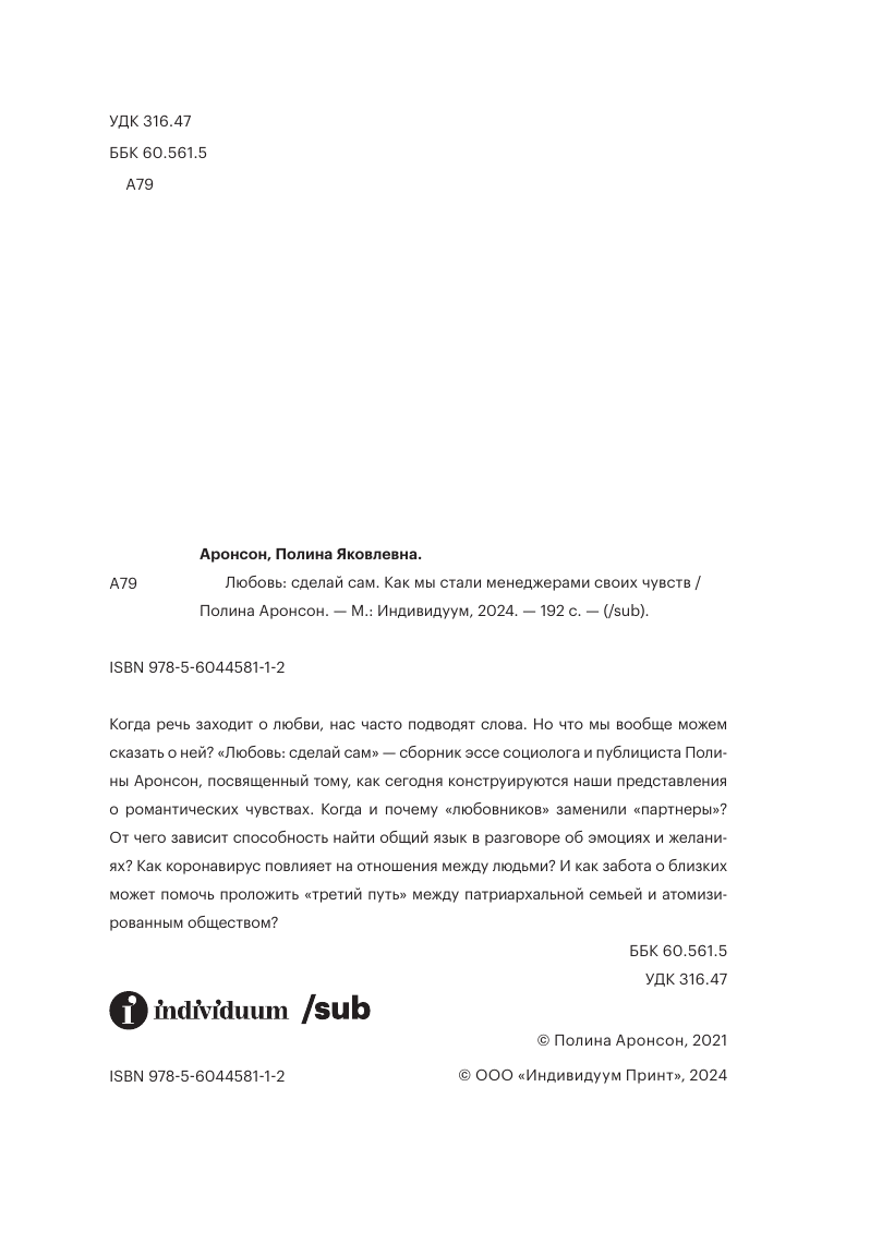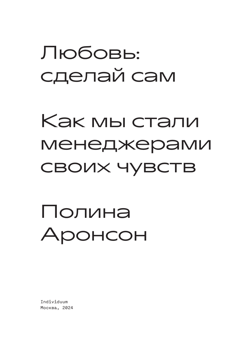 Любовь: сделай сам. Как мы стали менеджерами своих чувств (Аронсон Полина); ИНДИВИДУУМ ПРИНТ ООО, 2022