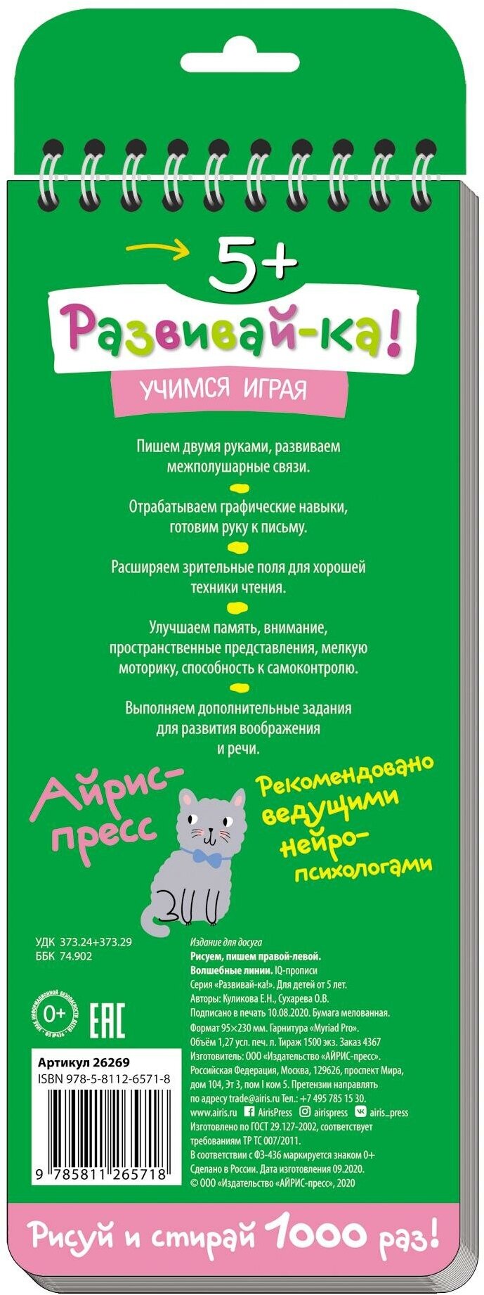 Многоразовые прописи на пружинке. 5+ Правой - левой. Волшебные линии. (Куликова Е., Сухарева О.); Айрис-пресс, 2020