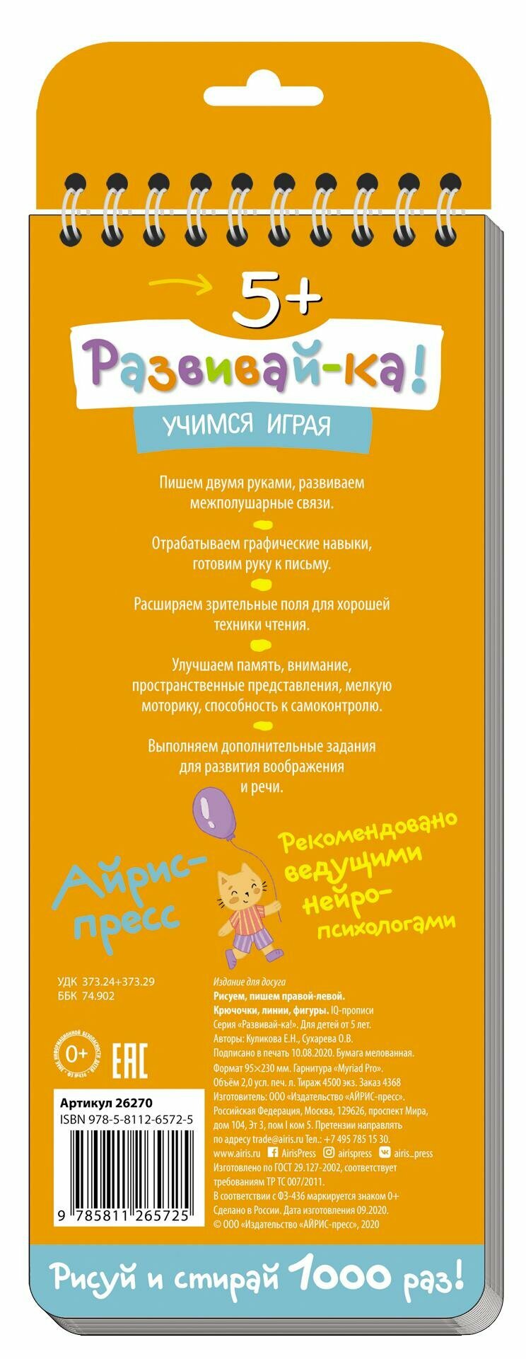 Многоразовые прописи на пружинке. 5+ Правой - левой. Крючочки линии фигуры. (Куликова Елена Николаевна; Сухарева Ольга Владимировна); Айрис-Пресс, 2020