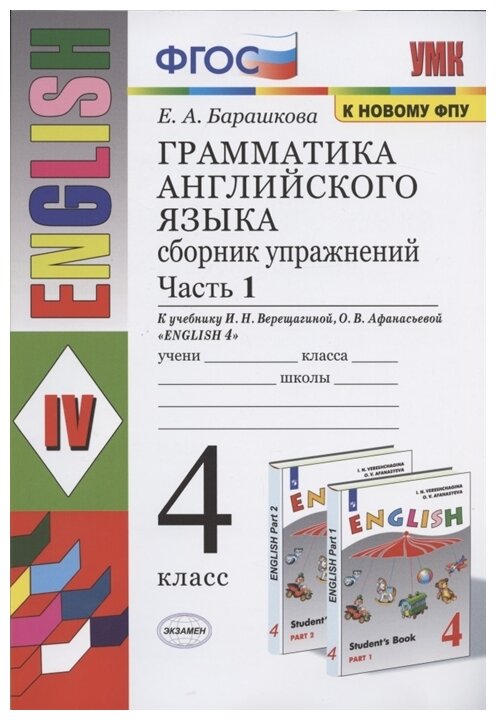 Грамматика Английского языка Сборник упражнений Ч.1. 4 кл. К учебнику Верещагиной и др. Англ.яз. 4кл. В 2Ч. изд.6 ФГОС (к новому учебнику). (Барашкова Елена Александровна); Экзамен Издательство, 2022