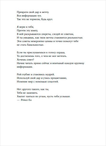 Брэндан Кейн – разработчик бизнес-стратегий и интернет-кампаний для знаменитостей и таких брендов, как IKEA, MTV, Skechers и др. С большим багажом знаний о продвижении за рубежом (российский̆ рынок блогеров весьма специфичный и сильно отличается своими законами и спецификой̆ от западного). Не стоит воспринимать книгу как пошаговую инструкцию по продвижению, но инсайдов и личного опыта автора много – тем и интересна и полезна.