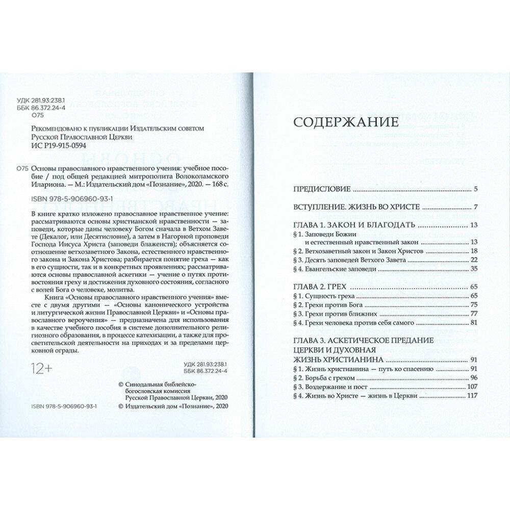 В книге кратко изложено православное нравственное учение: рассматриваются основы христианской нравственности - заповеди, которые даны человеку Богом сначала в Ветхом Завете (т.н. Декалог, или Десятисловие), а затем в Нагорной проповеди Господа Иисуса Христа (т.н. Заповеди блаженства); объясняется соотношение ветхозаветного Закона, естественного нравственного закона и Закона Христова; разбирается понятие греха - как в его сущности, так и в конкретных проявлениях; рассматриваются основы православной аскетики - учение о путях противостояния греху и достижения духовного состояния, согласного с волей Бога о человеке, молитва.