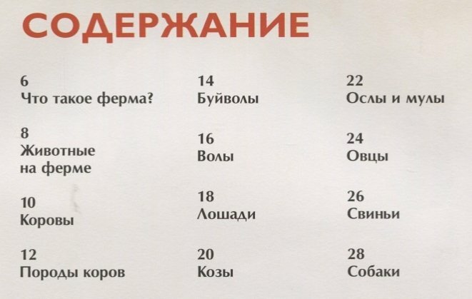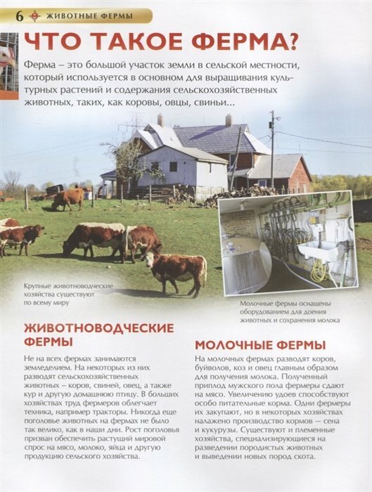 Эта книга познакомит с фермами разного направления и их четвероногими и пернатыми обитателями. Читатель получит много интересной информации о разных сельскохозяйственных животных, их породах, об уходе за ними и о продукции, которую мы от них получаем. Страницы издания оживляют красочные рисунки и фотографии, что делает чтение еще более познавательным и увлекательным.