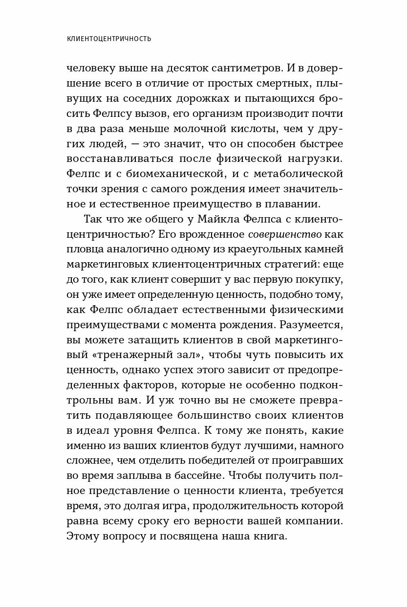 Впервые на русском языке представлена книга, в которой всесторонне анализируются все элементы клиентоцентричности. Ее авторы Питер Фейдер и Сара Томе объясняют, как правильно оперировать показателем пожизненной ценности клиента (CLV) и связать его с рыночной оценкой компании, как разумно инвестировать в отделы продаж и маркетинг с учетом этого показателя. Вы убедитесь, что клиентоцентричные компании получают долгосрочную выгоду в виде лояльности самых ценных клиентов, которые приобретают действительно нужные им товары или услуги.