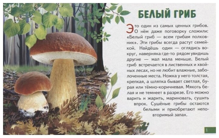 В комплект "Грибы" включены самые известные съедобные и несъедобные грибы, встречающиеся на территории нашей страны.