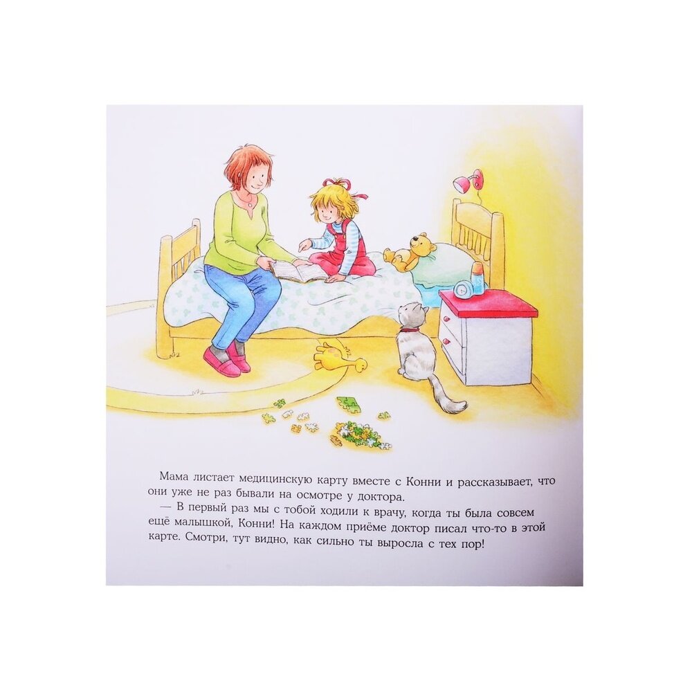 Книга была куплена с целью показать ребёнку, что осмотр врача - это не страшно. Ребёнку книга очень понравилась, теперь читаем её несколько раз в день. С неё же мы начали знакомство с Конни. История интересная, картинки красивые, листы плотные - всё в этой серии замечательно! Заказала ещё несколько книг про Конни.