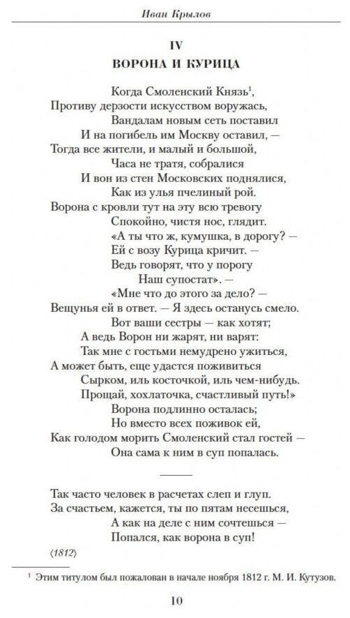 Практически весь классик нашей литературы в одной книге – баснописец и поэт, русский Эзоп и Лафонтен. В малом собрании сочинений собраны все известные и редко издаваемые басни писателя (10 книг), а также его стихи, пьесы и проза. Редкое и очень хорошее издание для коллекционеров русской классической литературы, учителей и преподавателей средней и высшей школы.