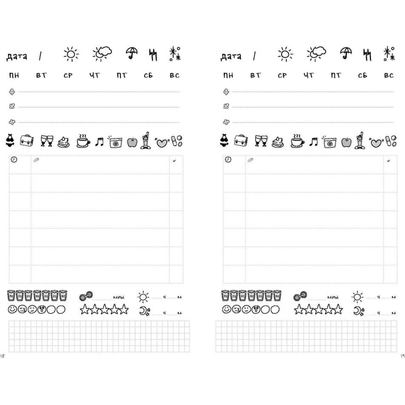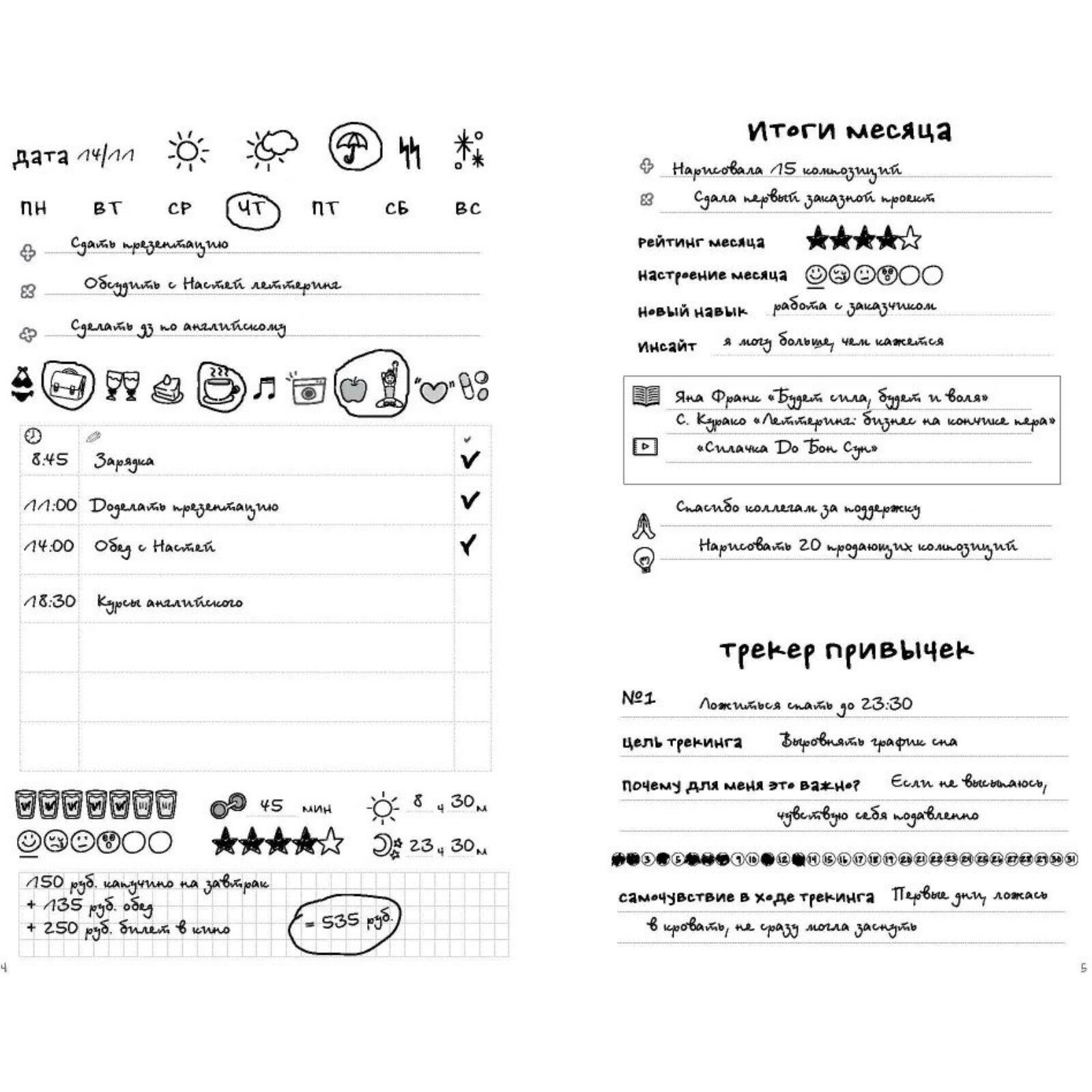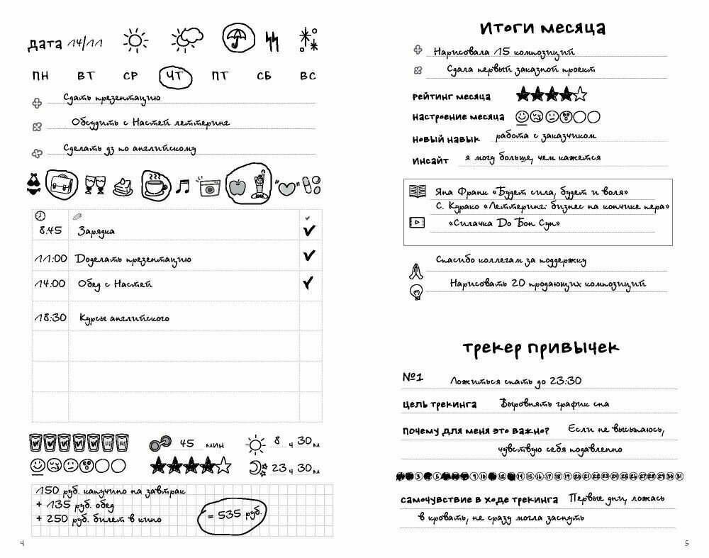 Ежедневник построен на трекинге главных составляющих нашей жизни: