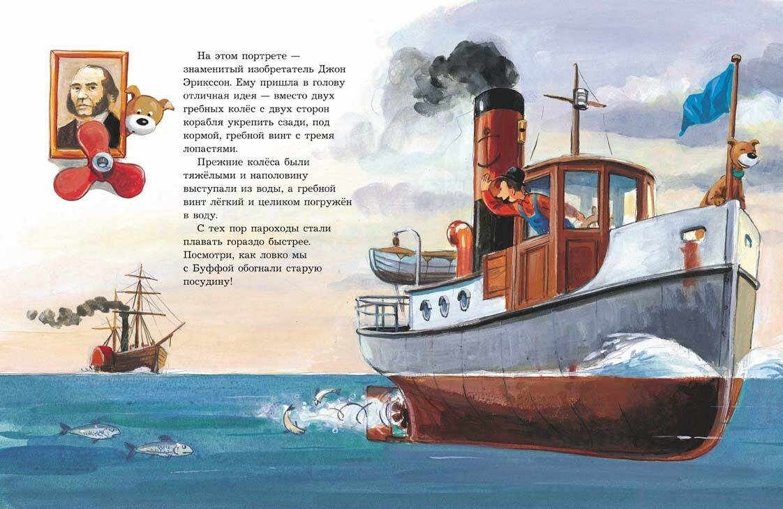 В этой книге шведский механик и мастер на все руки Мулле Мек и его верная помощница собака Буффа расскажут, откуда в современном мире появились автомобили, поезда, самолёты, корабли и высотные дома. Читатель узнает, где жили и на чём передвигались люди в старые времена; познакомится с находчивыми изобретателями и смелыми испытателями, благодаря которым человечество на протяжении столетий неуклонно двигалось вперёд по пути прогресса, а также сможет одним глазком заглянуть в будущее!