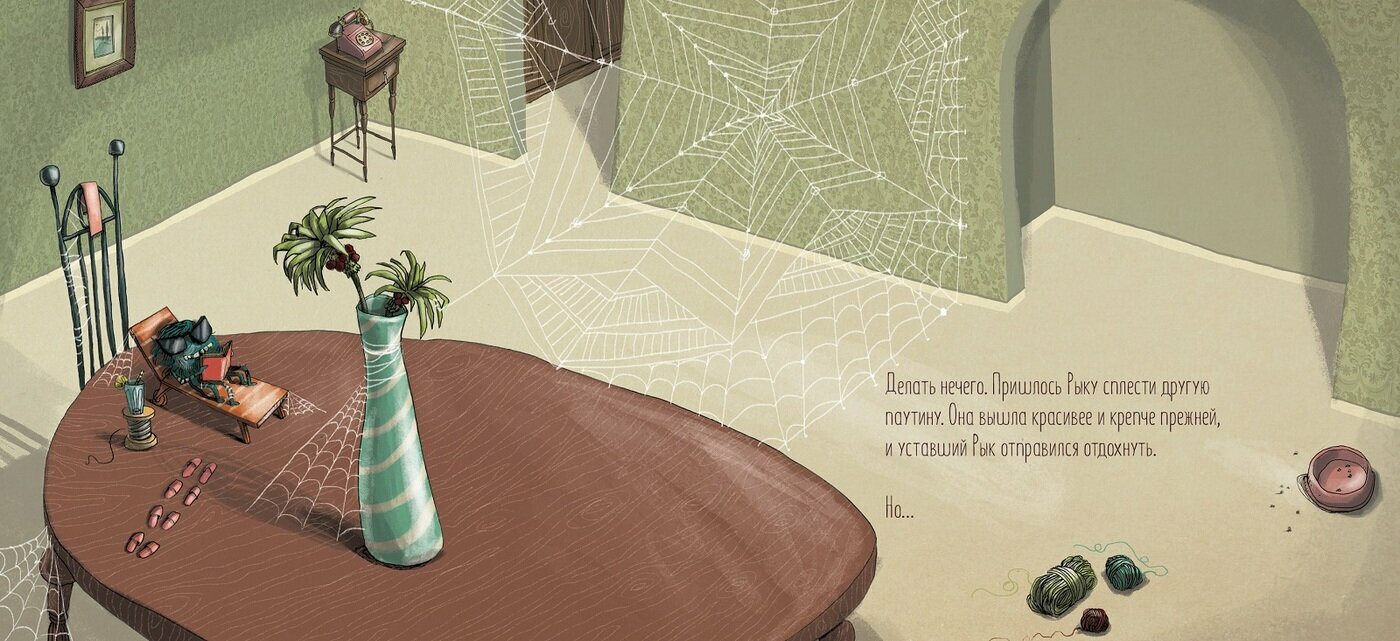 Первая книга новой серии рассказывает о пауке Рыке. Он считал, что все друзья издеваются над ним: стоит только отвернуться, как приятели рвут в клочья его чудесную паутину. Рык уже мечтал навсегда избавиться от соседей, но вдруг понял, что никто не хотел ему вредить. Просто паутина была настолько тонкая, что друзья не замечали ее и случайно портили. Разобравшись в истинных причинах поступков друзей, Рык успокоился и нашел нестандартный выход из ситуации.