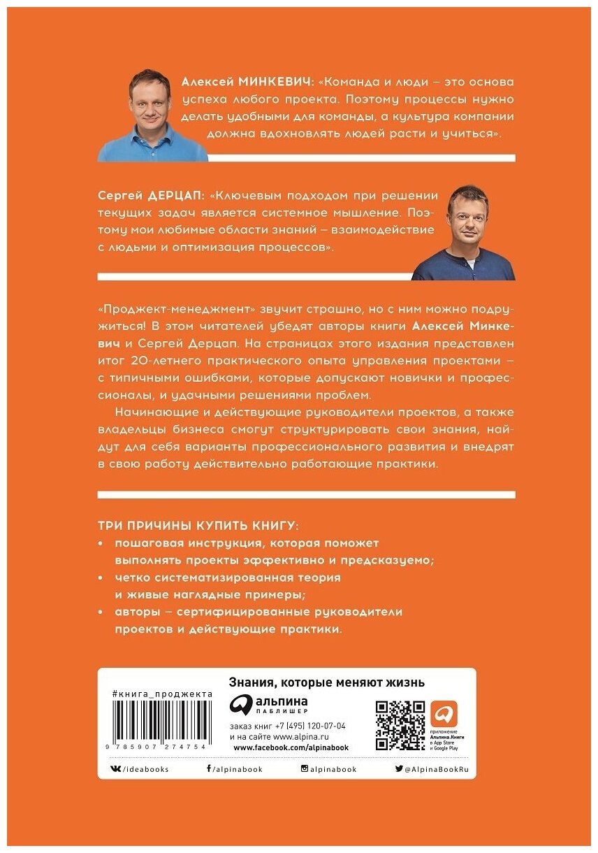 «Проджект-менеджмент: Как быть профессионалом» — нескучное иллюстрированное руководство для тех, кто хочет научиться контролировать качество и содержание проекта, управлять рисками и эффективностью, отслеживать прогресс, подбирать команду и просто профессионально развиваться. Это не пересказ классического свода по проектному менеджменту РМВООК, а ценные советы, с помощью которых начинающие и действующие проджект-менеджеры, а также владельцы бизнеса смогут перенять 20-летний опыт управления проектами Алексея Минкевича и Сергея Дерцапа и внедрить успешные практики в свою работу.