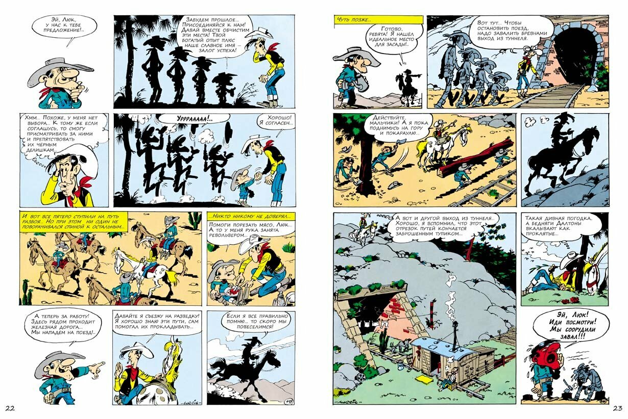 Каждая история о Счастливчике Люке – это захватывающий и весьма познавательный комедийный вестерн, в котором находят отражение реальные события, связанные с освоением Дикого Запада. В «Братьях Далтонах» главному герою противостоит четвёрка братьев-бандитов Далтонов, злобных, но не слишком умных. Они хотят отомстить Люку за своих кузенов, ещё бoльших бандитов, чем они сами, но победить удачливого ковбоя не так-то просто. Братья Далтоны ещё не раз появятся в историях о Счастливчике Люке, ведь они – главные комические персонажи всей серии, где их фамилия стала нарицательным именем, синонимом глупости и бестолковости.