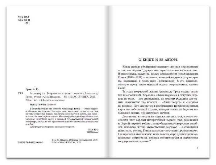 Алые паруса. Бегущая по волнам (Грин Александр Степанович); Энас-книга, 2021