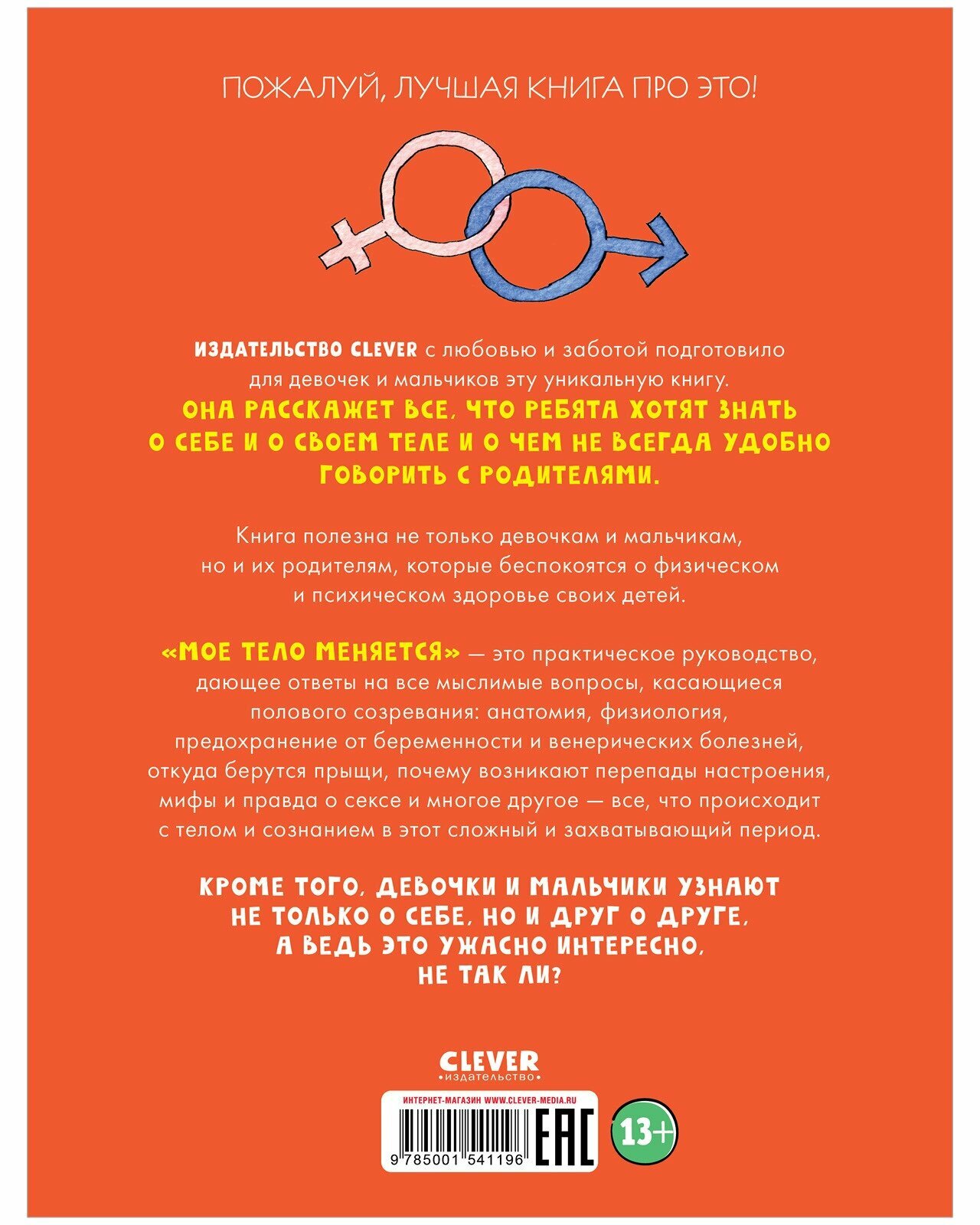 Издательство CLEVERс любовью и заботой подготовило для девочек и мальчиков эту уникальную книгу. Она расскажет все, что ребята хотят знать о себе и о своем теле и о чем не всегда удобно говорить с родителями. Книга полезна не только девочкам и мальчикам, но и их родителям, которые беспокоятся о физическом и психическом здоровье своих детей. "Мое тело меняется" - это практическое руководство, дающее ответы на все мыслимые вопросы, касающиеся полового созревания анатомия, физиология, предохранение от беременности и венерических болезней, откуда берутся прыщи, почему возникают перепады настроения, мифы и правда о сексе и многое другое - все, что происходит с телом и сознанием в этот сложный и захватывающий период. Кроме того, девочки и мальчики узнают не только о себе, но и друг о друге, а ведь это ужасно интересно, не так ли?