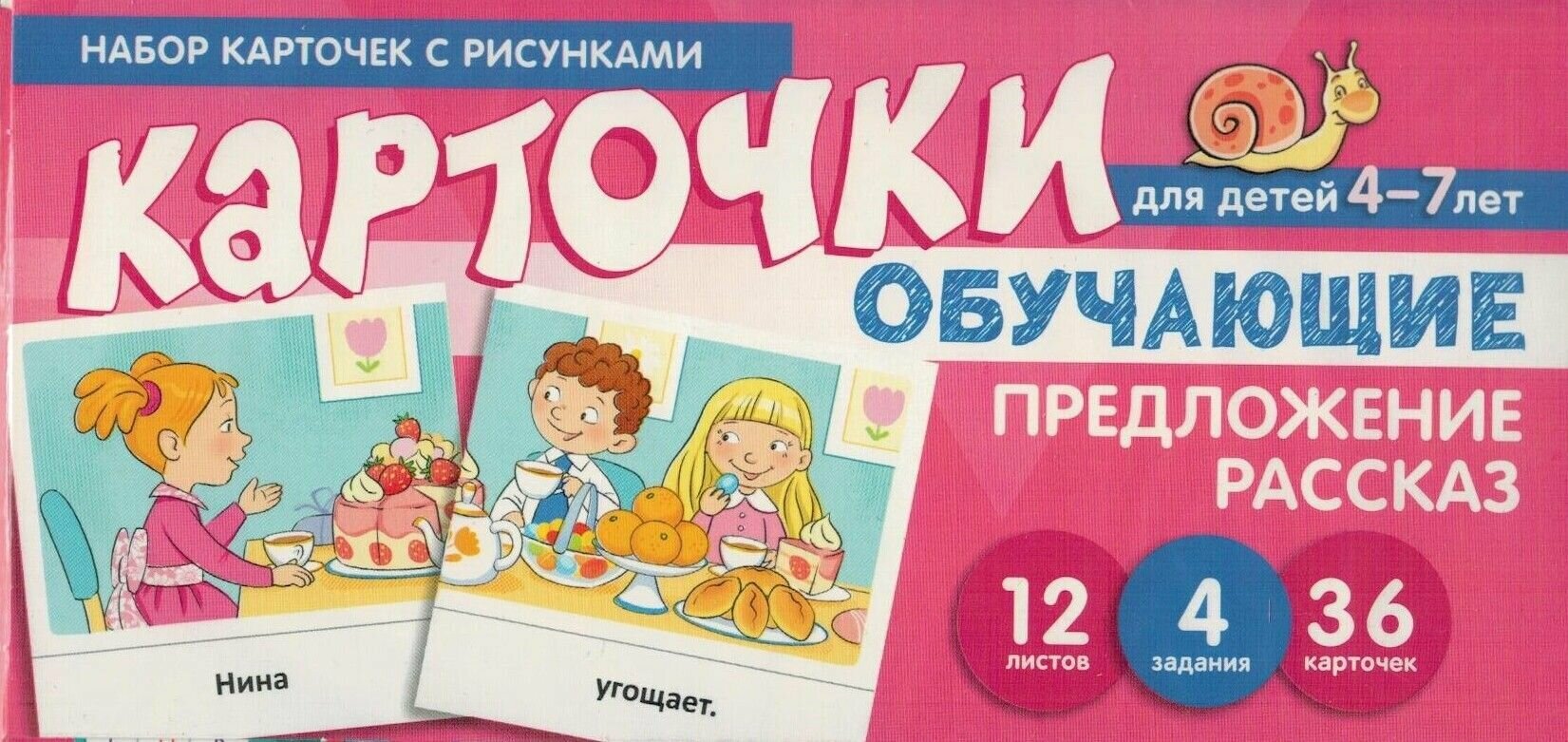 Обучающий комплект «Предложение. Рассказ» представляет собой 12 листов, состоящих из 36 карточек и 4 заданий, и является продолжением предыдущего, диагностического, выпуска.
