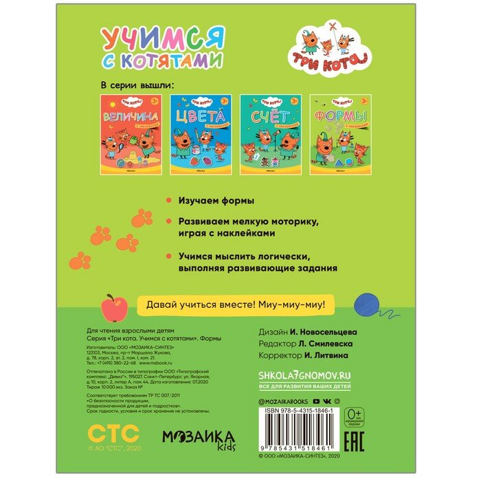 Сервис сравнения цен СкидкаГИД предлагает сравнить цены на товар «Книга: Три кота. Учимся с котятами. Формы (Смилевска Л. (ред.)); МОЗАИКА kids, 2022»