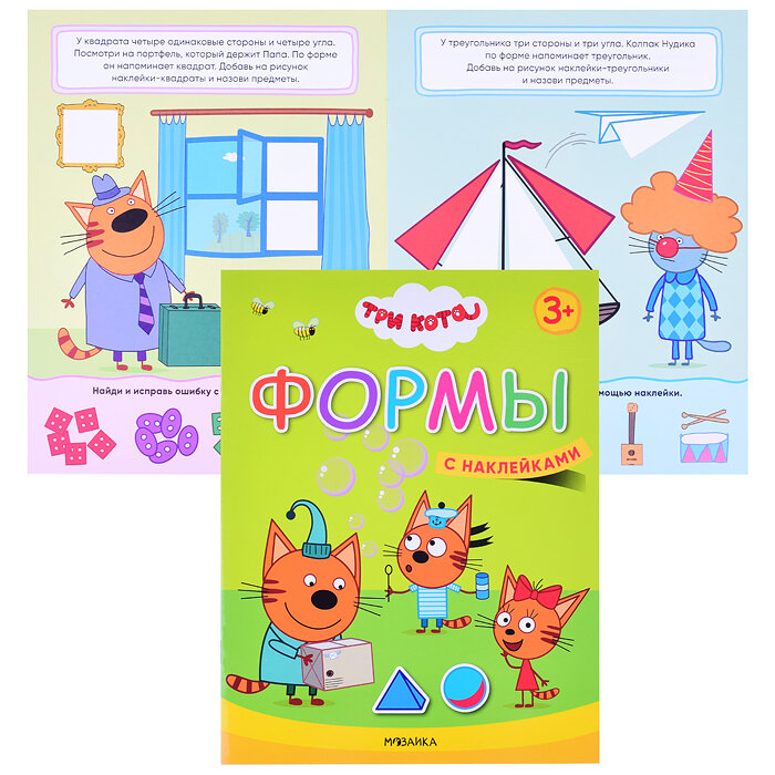 Формы (Три кота. Учимся с котятами), книжка с наклейками